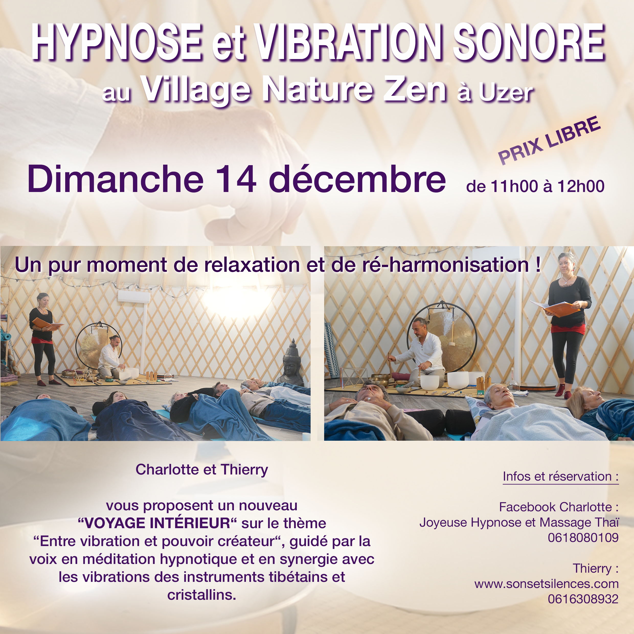 Vous serez en présence de sons et de vibrations qui vous permettrons un voyage intérieur unique…une reconnexion à soi…
