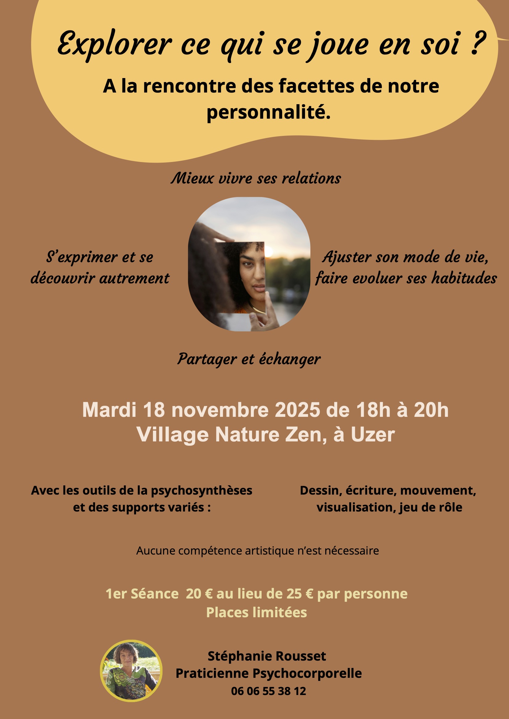 sur place au Village Nature Zen ou au +33 (0)4 75 89 29 21