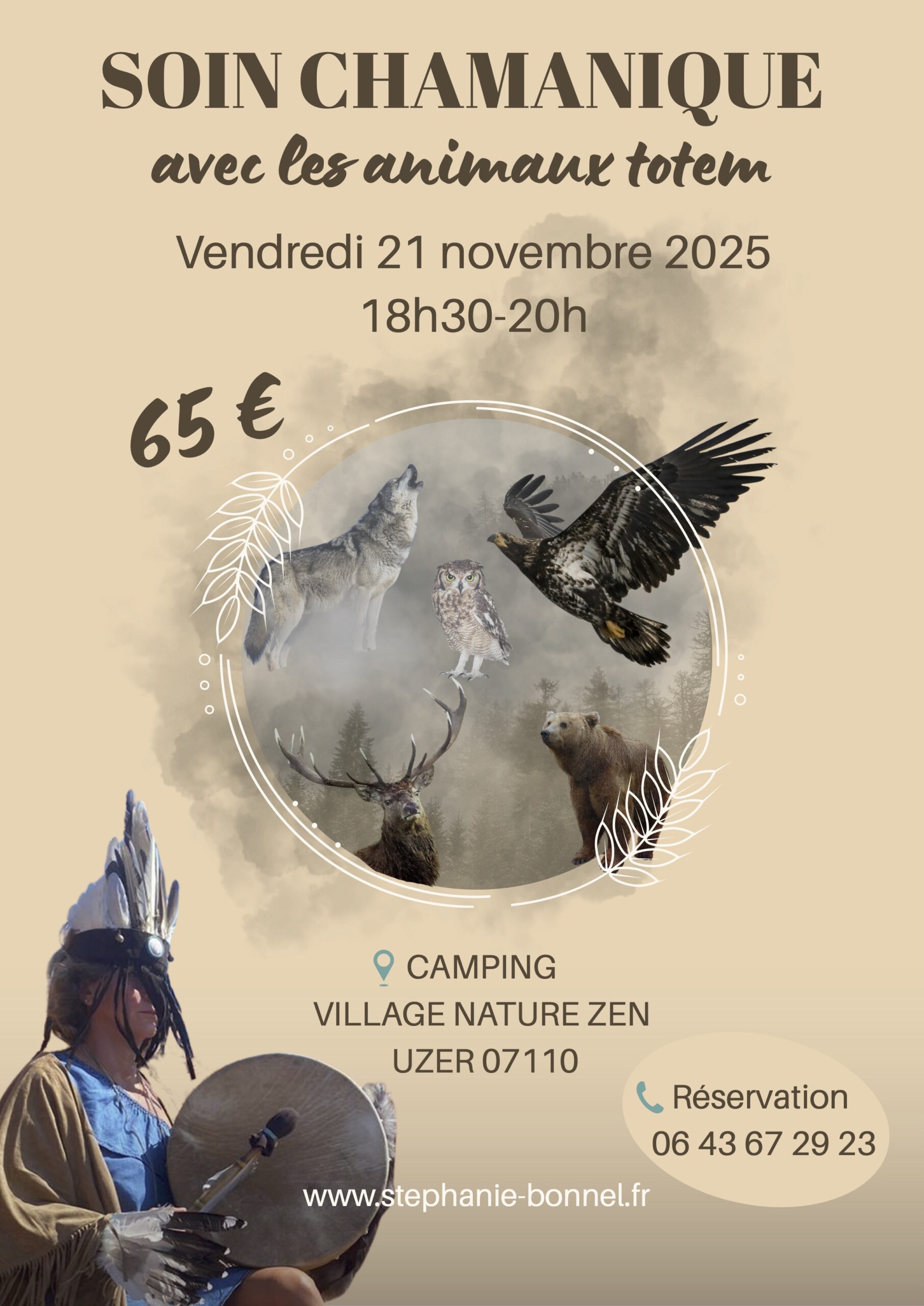 sur place au Village Nature Zen ou au +33 (0)4 75 89 29 21