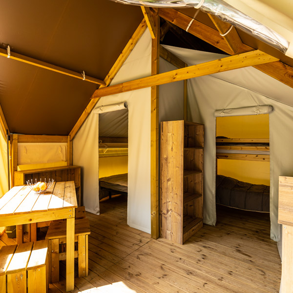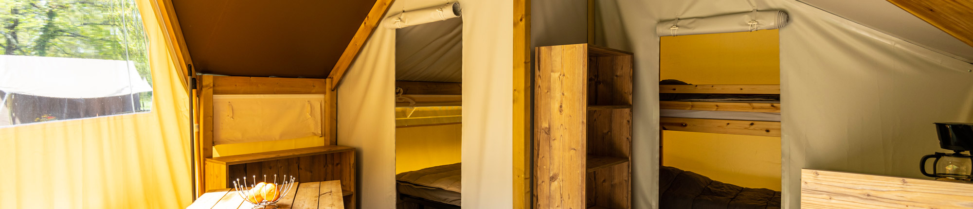 Village Nature Zen – 3-sterrencamping biedt 3 soorten uitgeruste tenten aan, zonder sanitaire voorziening, die het ideale concept zijn indien u kiest voor een ongewoon verblijf midden in de natuur.