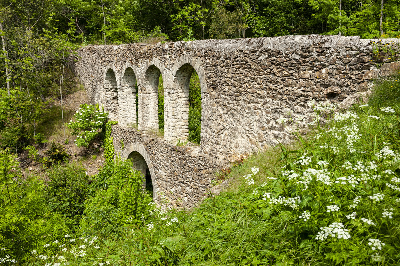 Vertrekkend vanuit Rocher volgt u een oud aquaduct, gebouwd in 1850 om de tuinen en fonteinen van het oude kasteel van water te voorzien. U vervolgt vervolgens uw route door talrijke kastanjebossen.