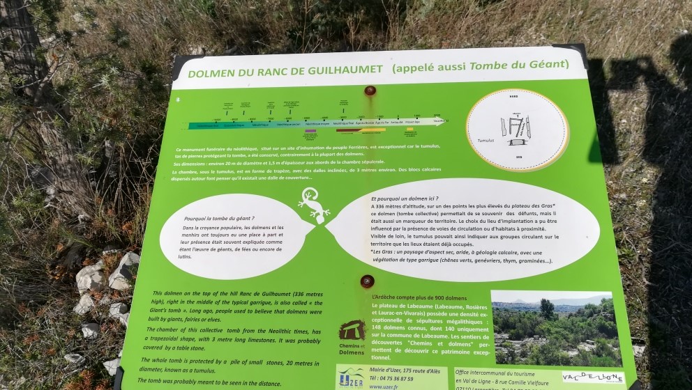 - Tip: Vergeet in de buurt van de Ranc de Guilhaumet niet om de dolmen “La Tombe du Géant” oftewel reuzengraf te bekijken en neem een foto van uw staanplaats op Camping La Turelure.